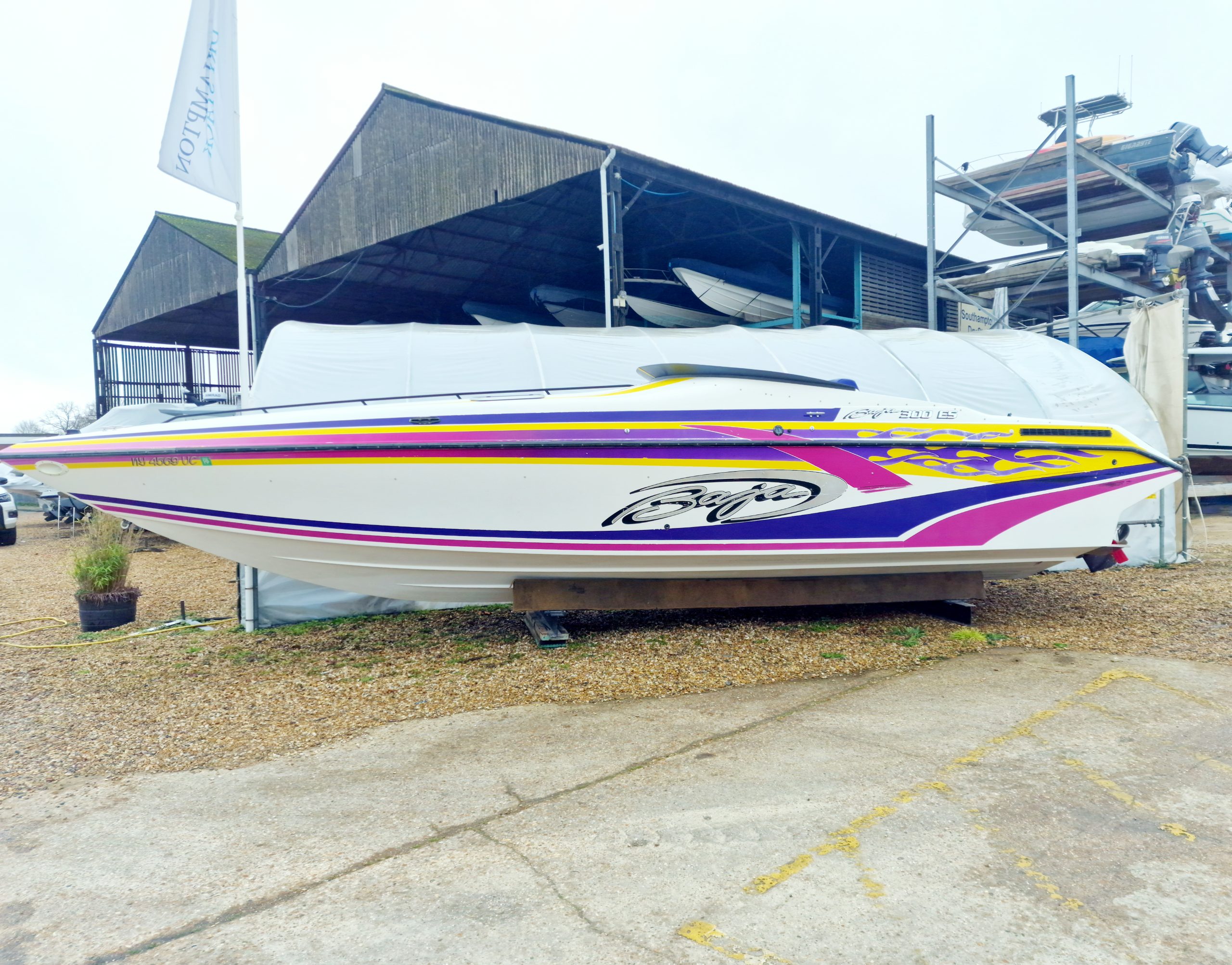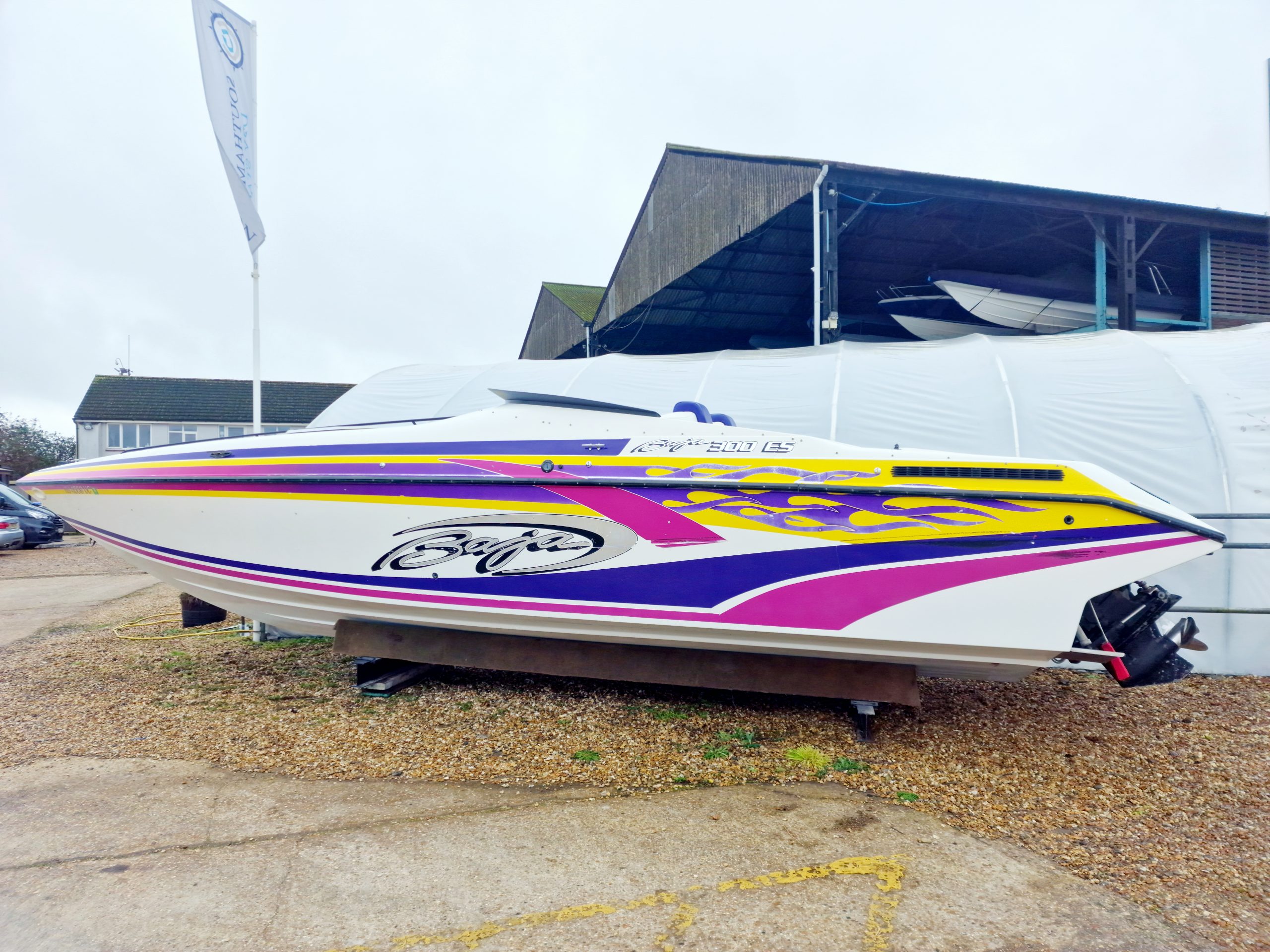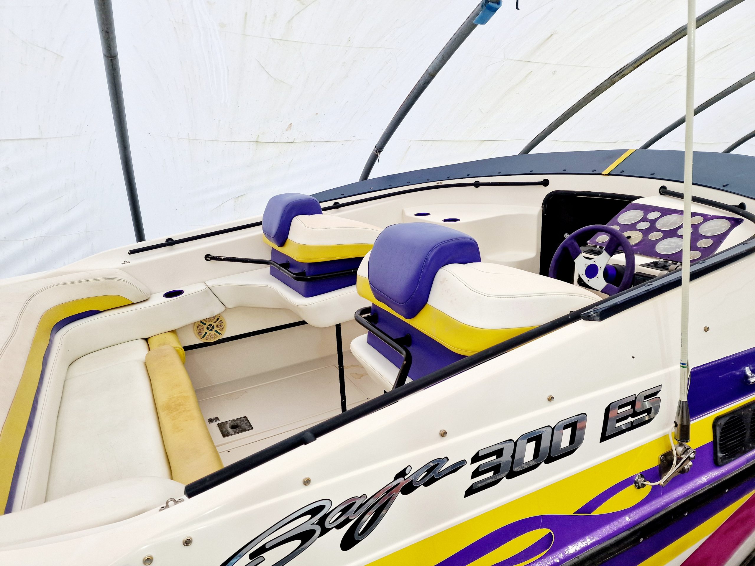 This high-performance offshore powerboat is known for its sleek design, exceptional handling, and powerful engine options. Measuring 30 feet in length, this boat is equipped with twin 454 V8 engines pushing out 330HP each, providing ample horsepower for thrilling speeds and agile manoeuvrability on the water. The spacious cockpit layout offers comfortable seating for passengers and a well-appointed helm station for the captain. With its deep V-hull design, the Baja 300 ES delivers a smooth and stable ride, making it suitable for both cruising and adrenaline-pumping water sports. Built with quality materials and craftsmanship, this iconic boat from the 1990s continues to be cherished by boating enthusiasts for its timeless style and exhilarating performance on the open seas.