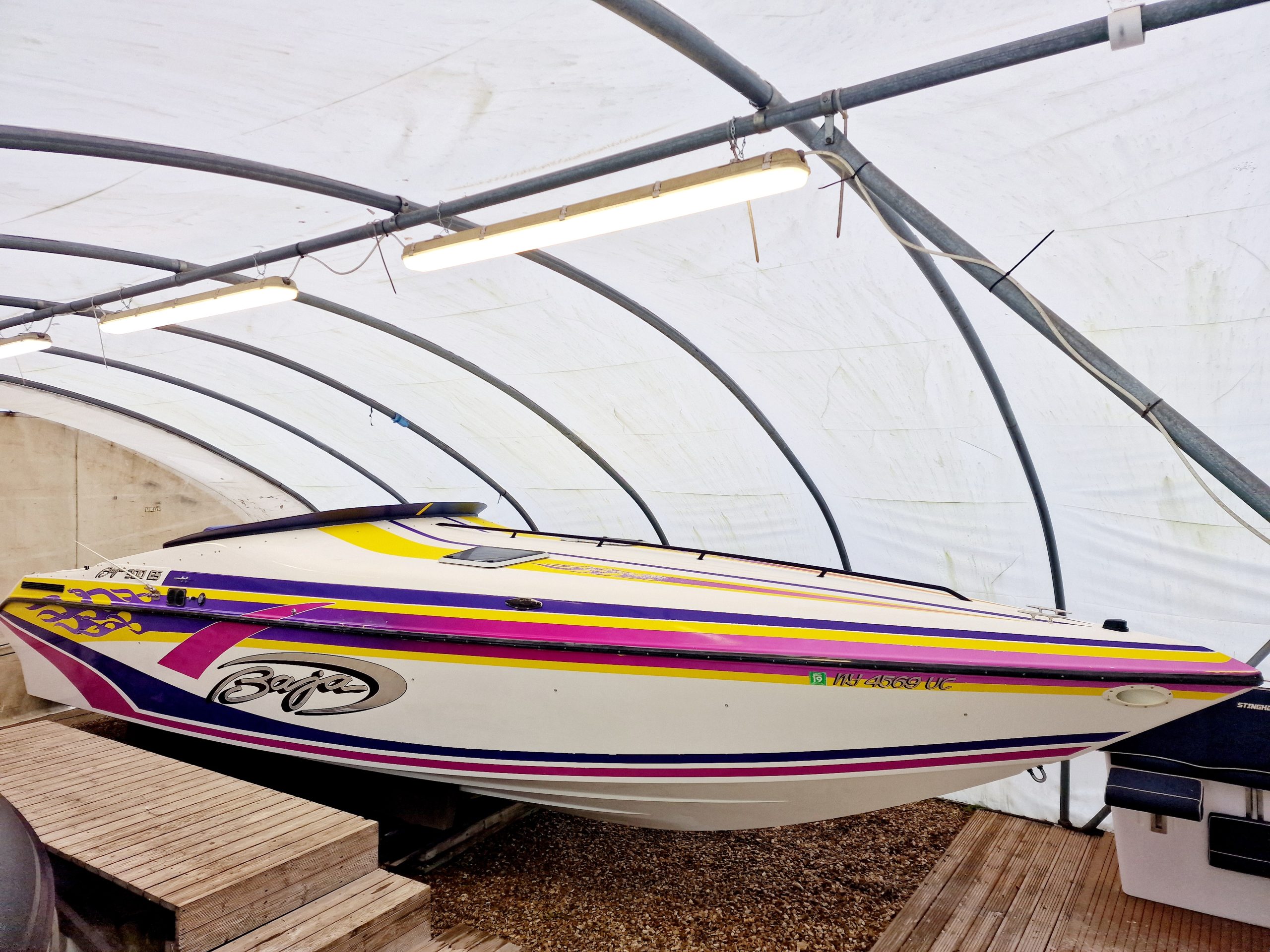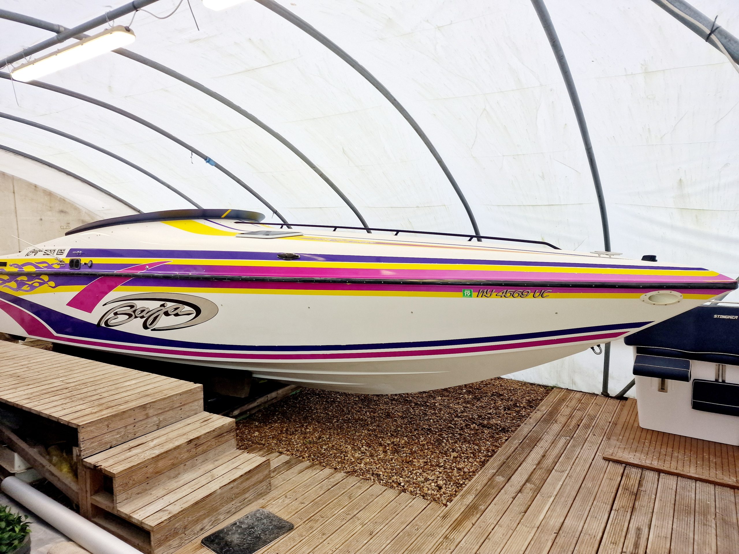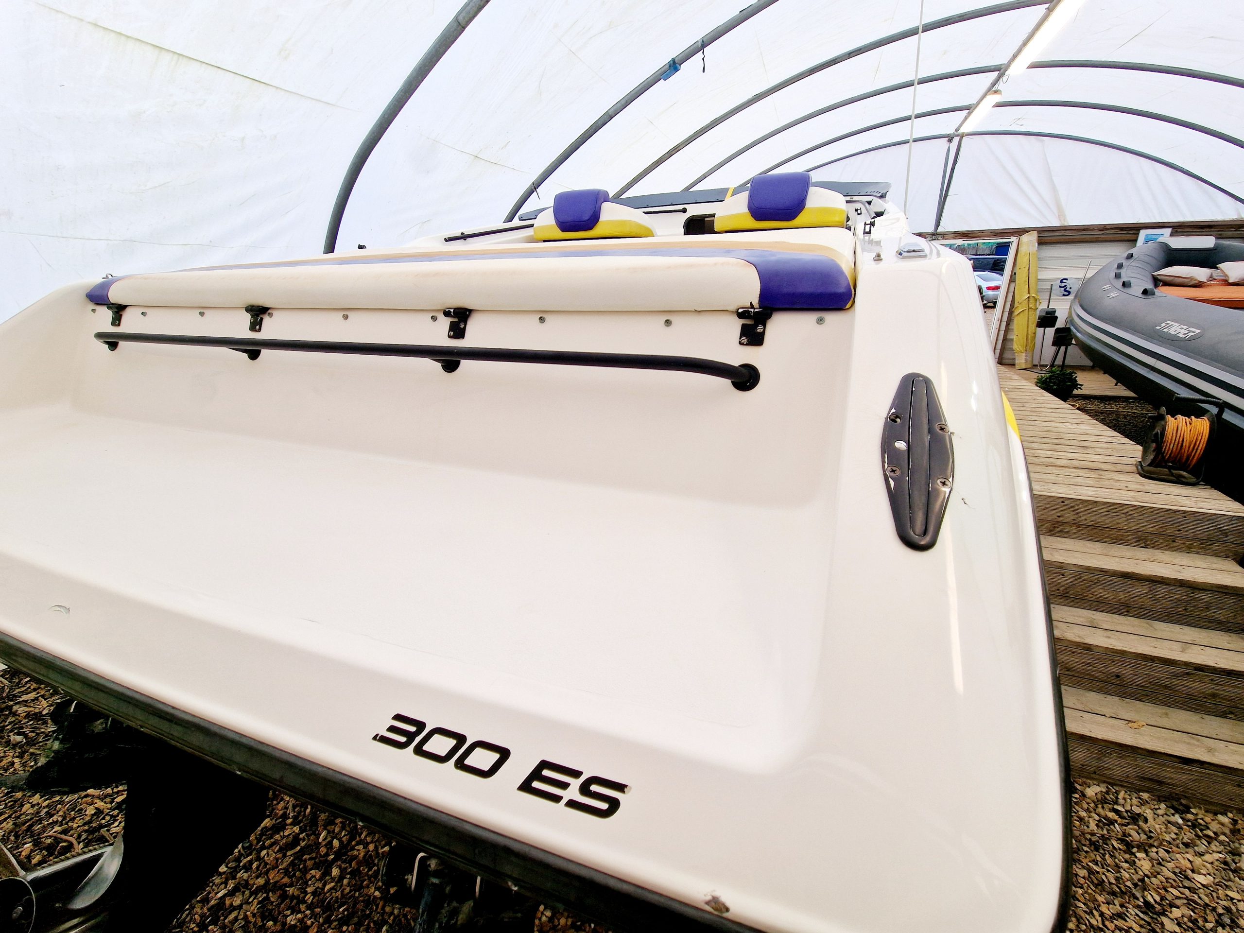 This high-performance offshore powerboat is known for its sleek design, exceptional handling, and powerful engine options. Measuring 30 feet in length, this boat is equipped with twin 454 V8 engines pushing out 330HP each, providing ample horsepower for thrilling speeds and agile manoeuvrability on the water. The spacious cockpit layout offers comfortable seating for passengers and a well-appointed helm station for the captain. With its deep V-hull design, the Baja 300 ES delivers a smooth and stable ride, making it suitable for both cruising and adrenaline-pumping water sports. Built with quality materials and craftsmanship, this iconic boat from the 1990s continues to be cherished by boating enthusiasts for its timeless style and exhilarating performance on the open seas.