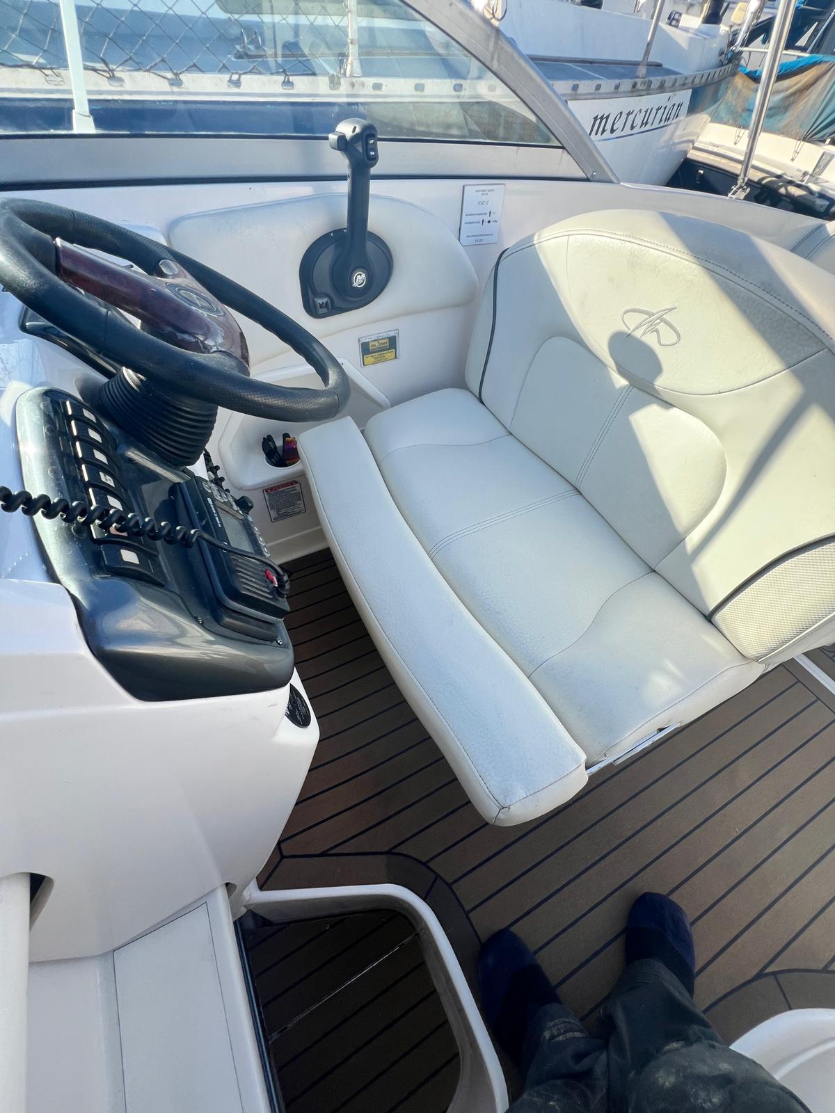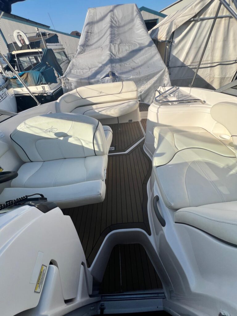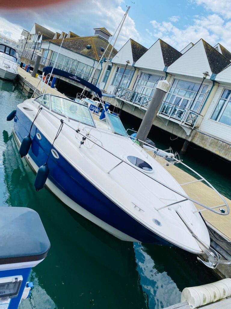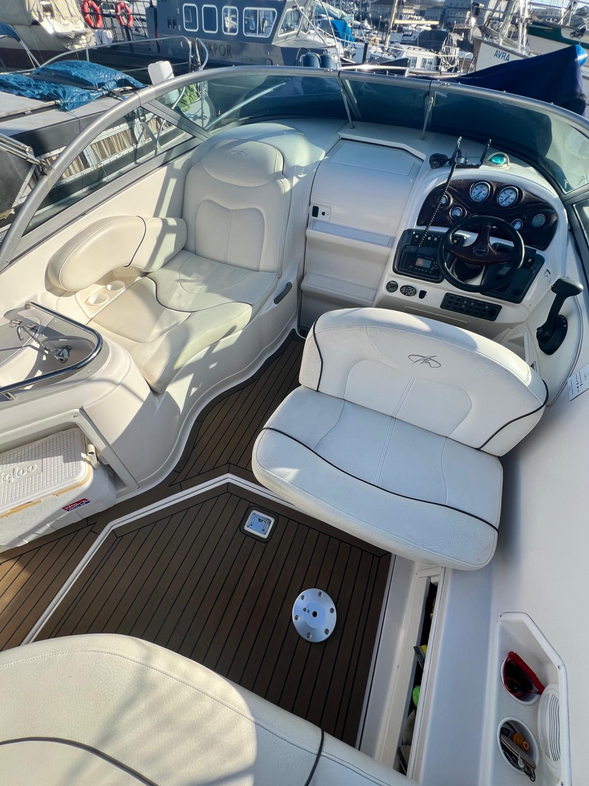 ‘Vinto Tinto’ is a cracking example of the Monterey 245 CR from 2003. Powered by a single Mercruiser 350 Mag MPI 5.7 litre V8 petrol with a bravo three counter rotating sterndrive.