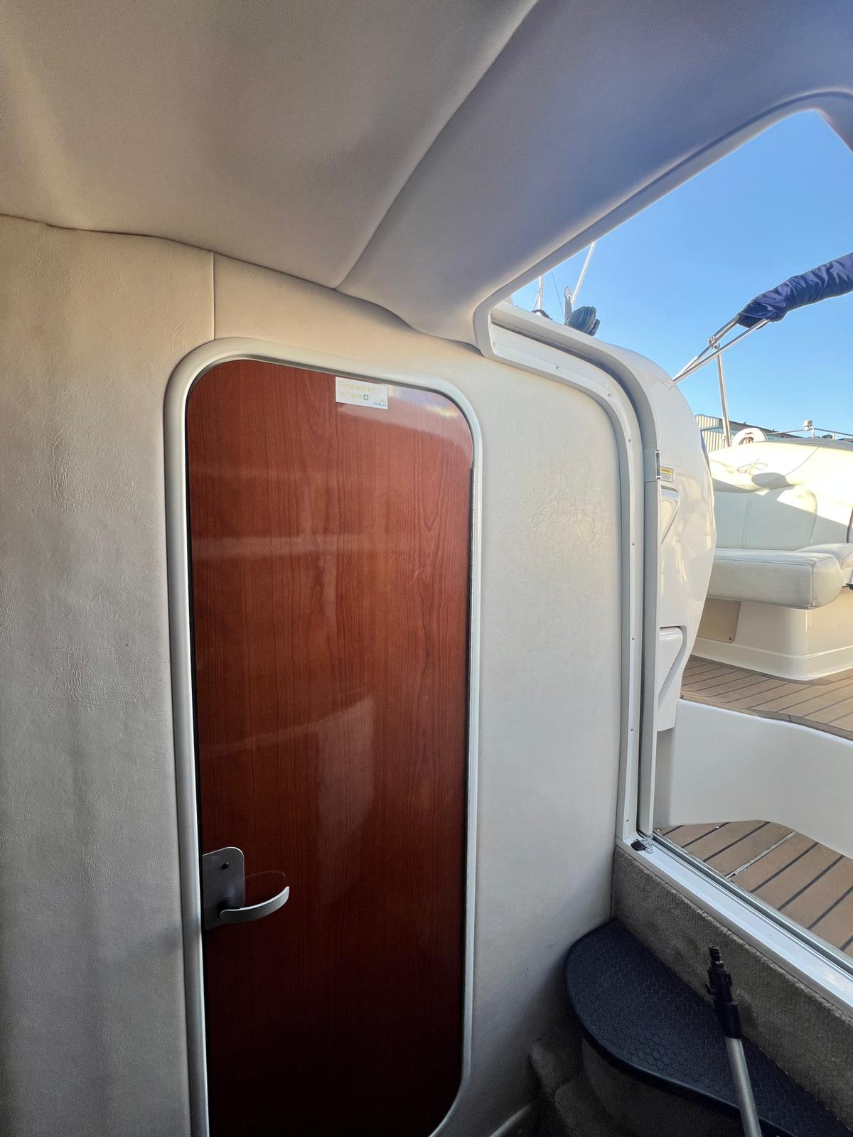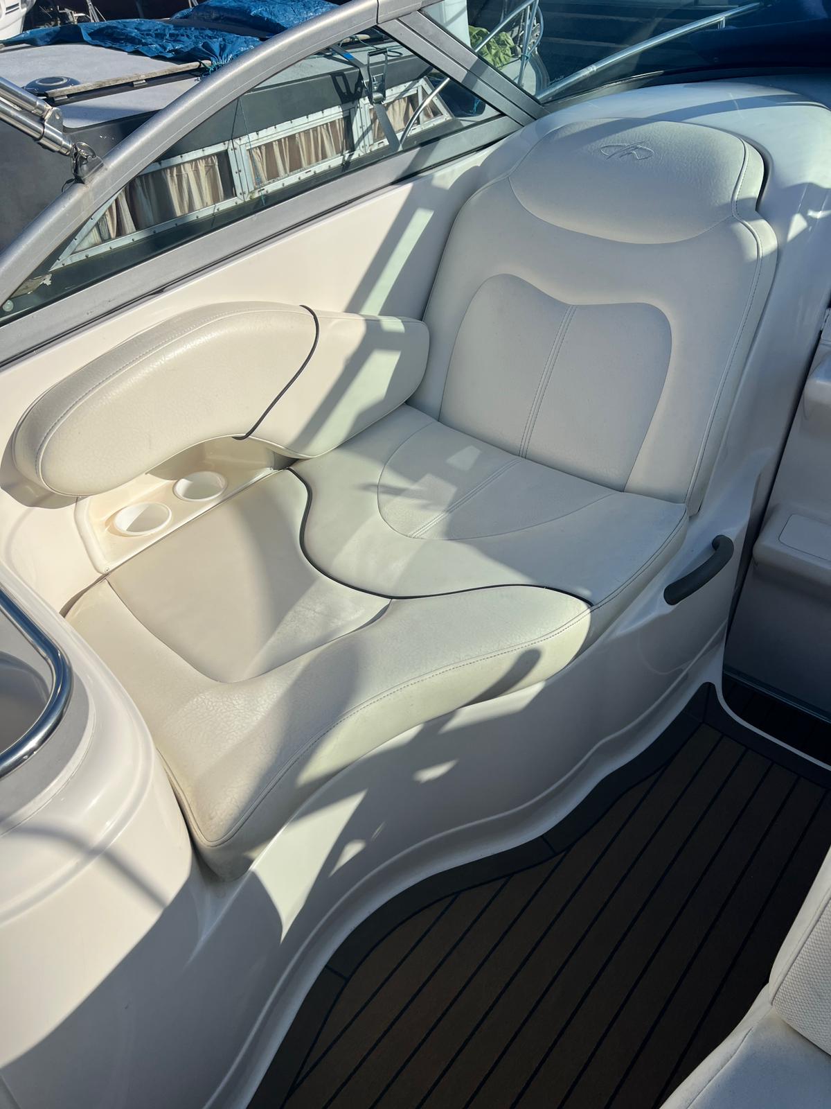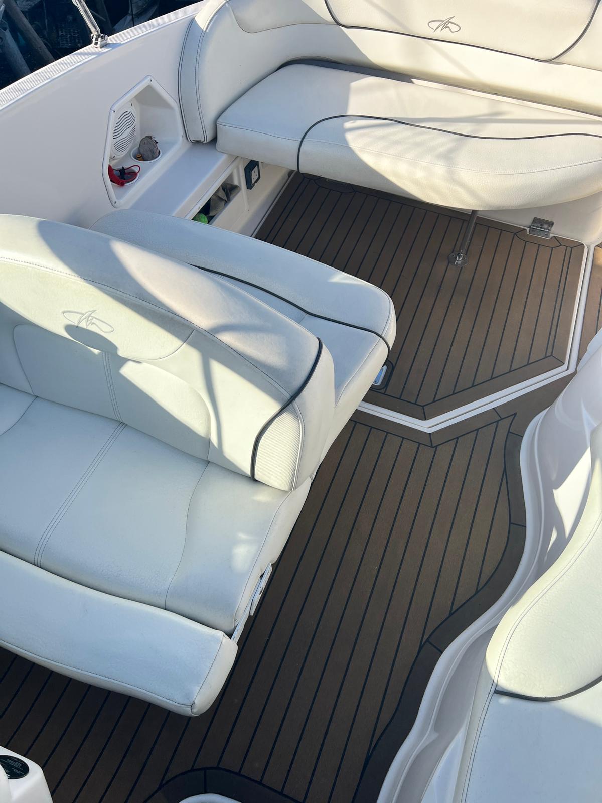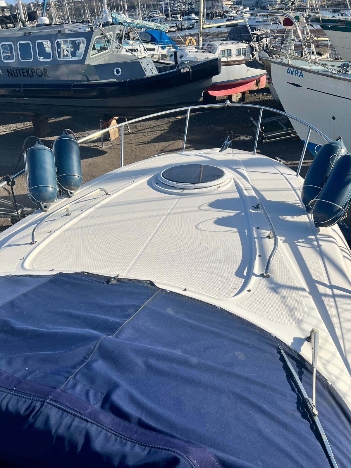 ‘Vinto Tinto’ is a cracking example of the Monterey 245 CR from 2003. Powered by a single Mercruiser 350 Mag MPI 5.7 litre V8 petrol with a bravo three counter rotating sterndrive.