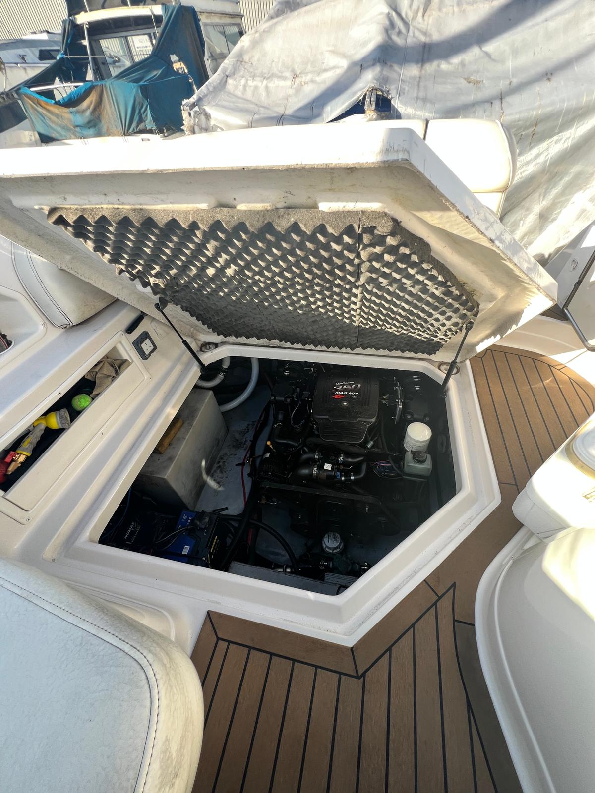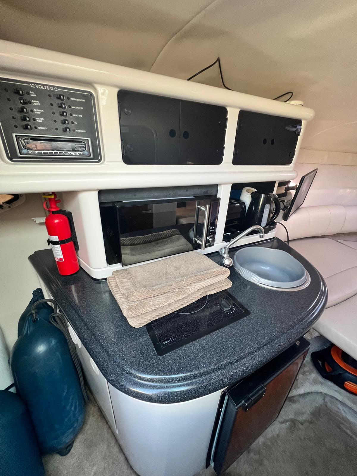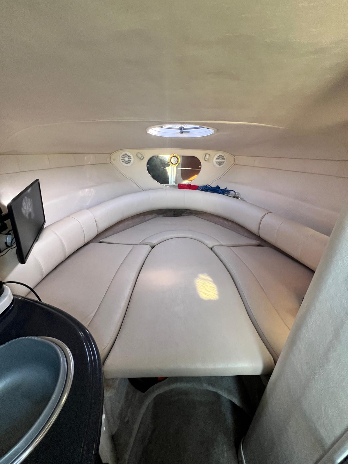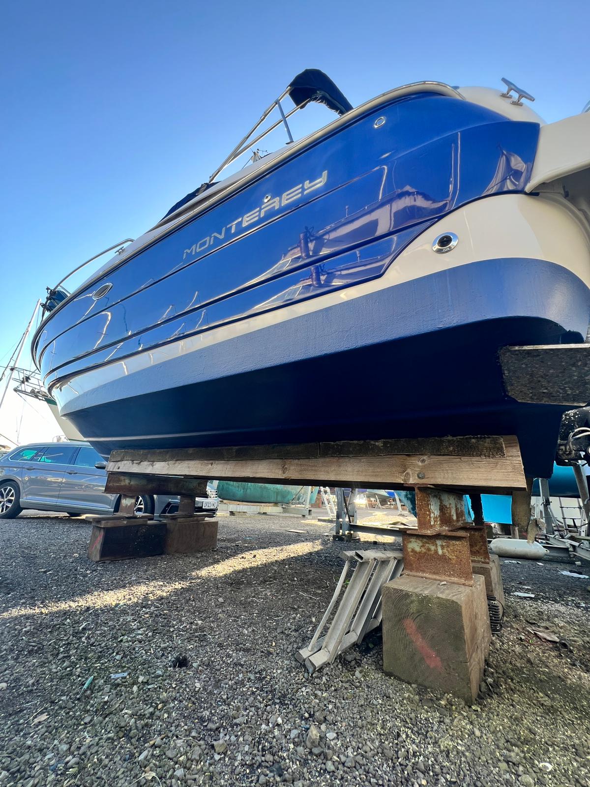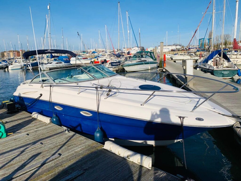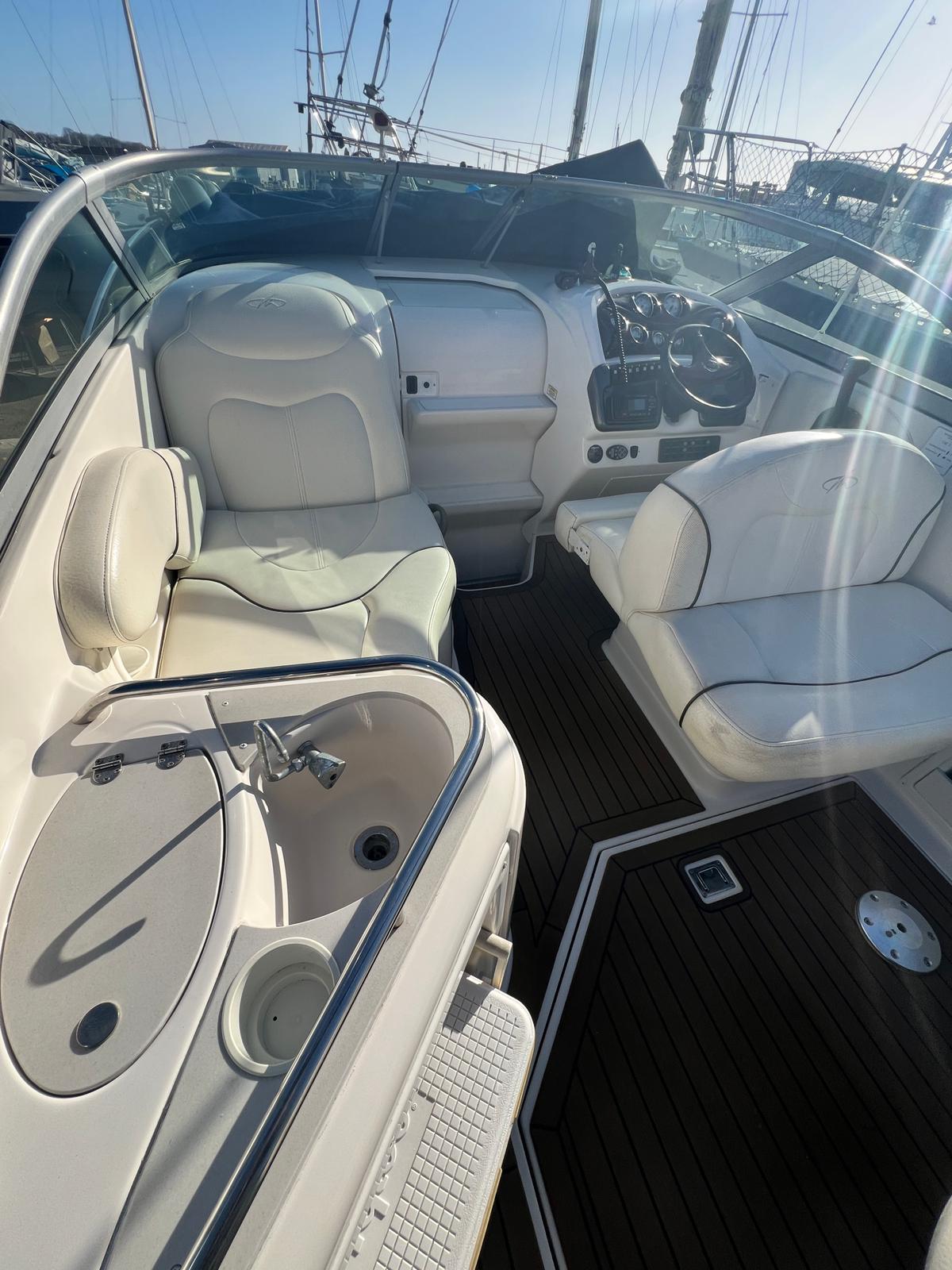 Well-maintained and much loved by the current owner, showing evidence of this through previous ownership with excellent full-service records and documents. The Monterey 245 CR is a sports cruiser with plenty of power, offering a good water sports platform. Alternatively, it can be a good cruiser for relaxing and entertaining on weekends. A well-laid-out cockpit with sink, ice well and coolbox offers a wonderful social feel under the Bimini or the full canopy cover for the cooler evenings. The cockpit extends to a large bathing – swim platform with a shower perfect for those days on the water. Sleeps four, a double under cockpit cabin and a double berth that converts in the saloon. Galley with hot/cold water sink, fridge, hot plate, and microwave. Heads with a shower hot/cold water basin, and a toilet.