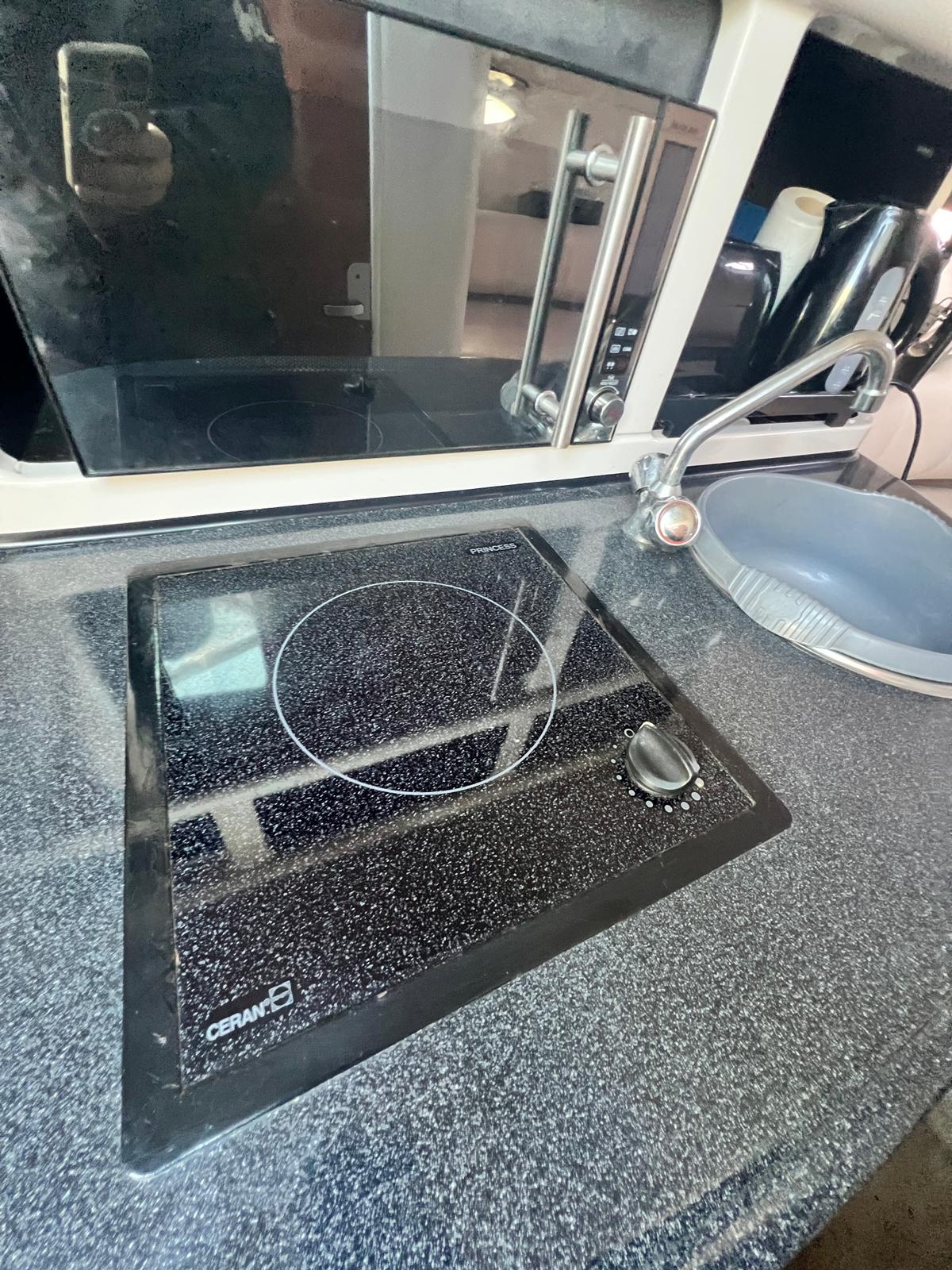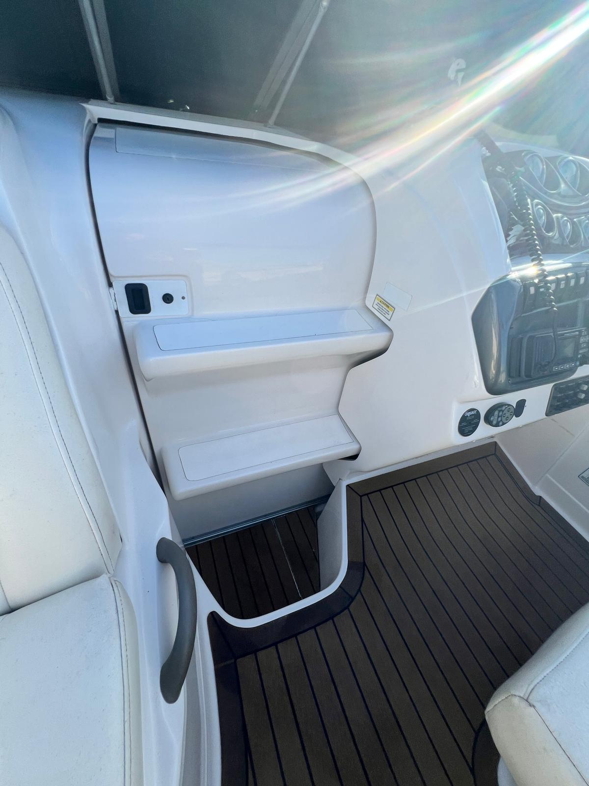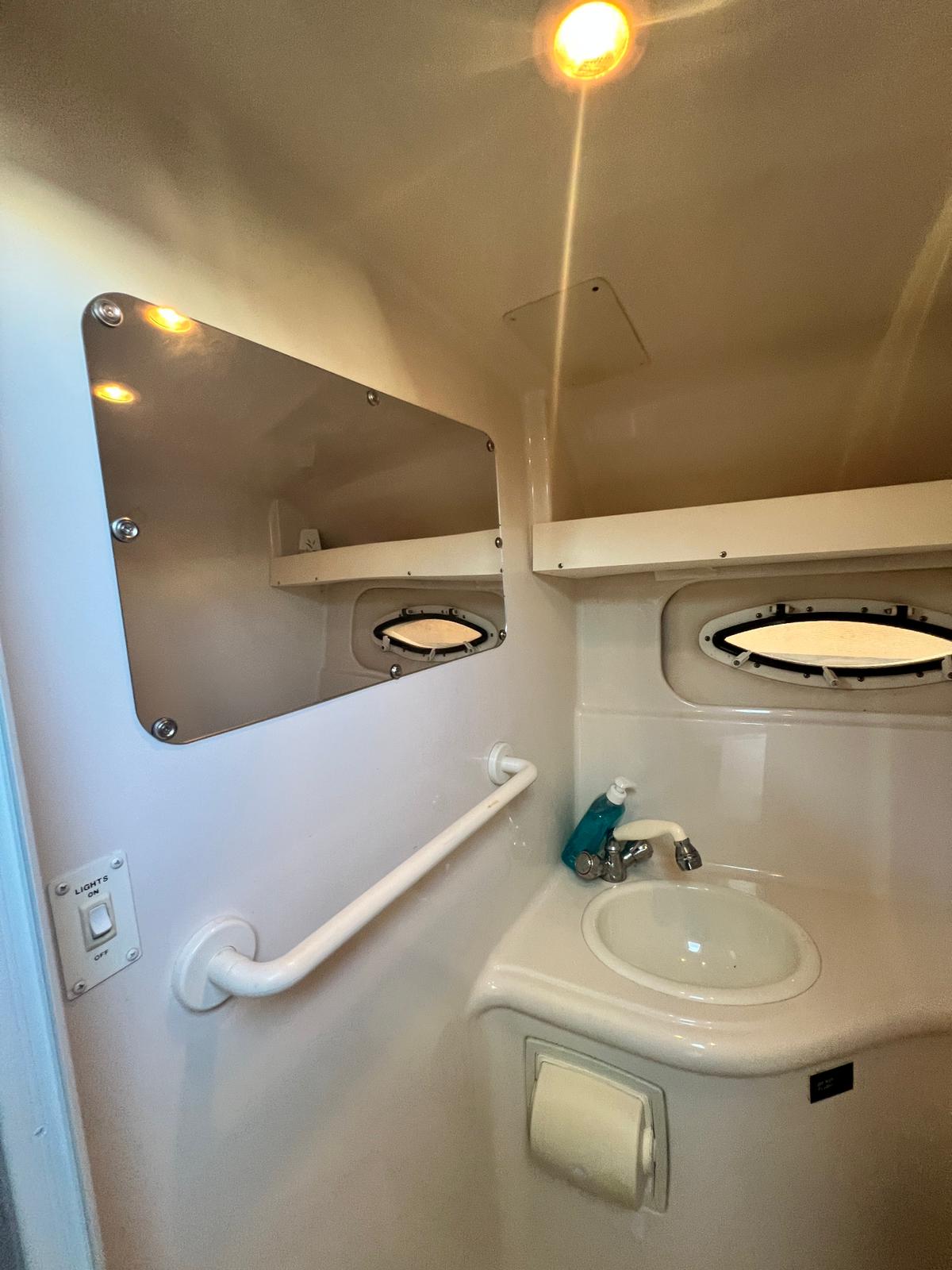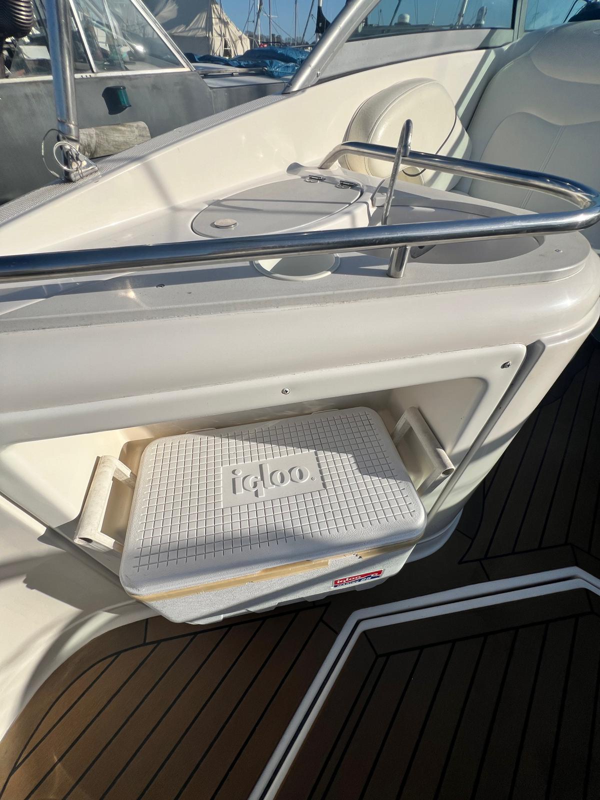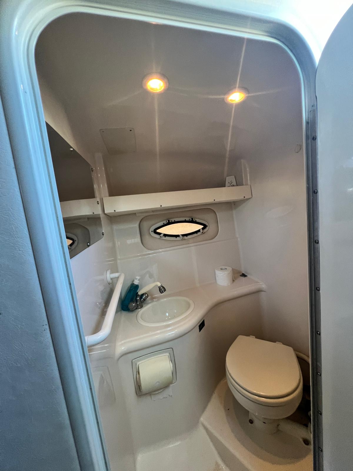 Well-maintained and much loved by the current owner, showing evidence of this through previous ownership with excellent full-service records and documents. The Monterey 245 CR is a sports cruiser with plenty of power, offering a good water sports platform. Alternatively, it can be a good cruiser for relaxing and entertaining on weekends. A well-laid-out cockpit with sink, ice well and coolbox offers a wonderful social feel under the Bimini or the full canopy cover for the cooler evenings. The cockpit extends to a large bathing – swim platform with a shower perfect for those days on the water. Sleeps four, a double under cockpit cabin and a double berth that converts in the saloon. Galley with hot/cold water sink, fridge, hot plate, and microwave. Heads with a shower hot/cold water basin, and a toilet.